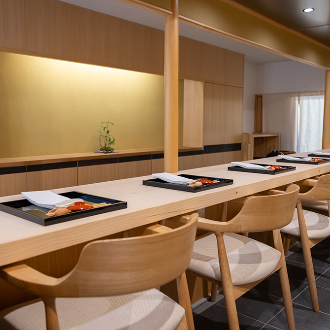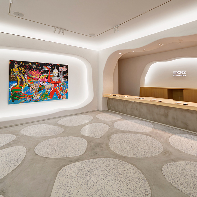 ポップカルチャーと現代美術の接続を目指し、実験的な企画ギャラリーを展開する「NANZUKA」と、『鮨さいとう』がコラボレーションした鮨店。店主は『鮨さいとう』の個室カウンターを任された沼尾 隆佑氏が担う。