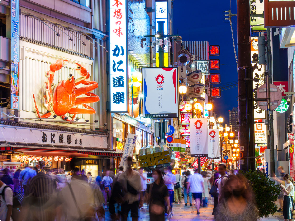 An energetic, vibrant metropolis that is the economic center of the Kansai region and a cultural powerhouse within Japan, Osaka is a symphony of tradition and modernity where ancient cultural heritage harmonizes with contemporary dynamism. Endearingly known as "Japan's Kitchen," Osaka's culinary scene is legendary, but its appeal extends far beyond food, encompassing a rich tapestry of cultural, historical and modern attractions.