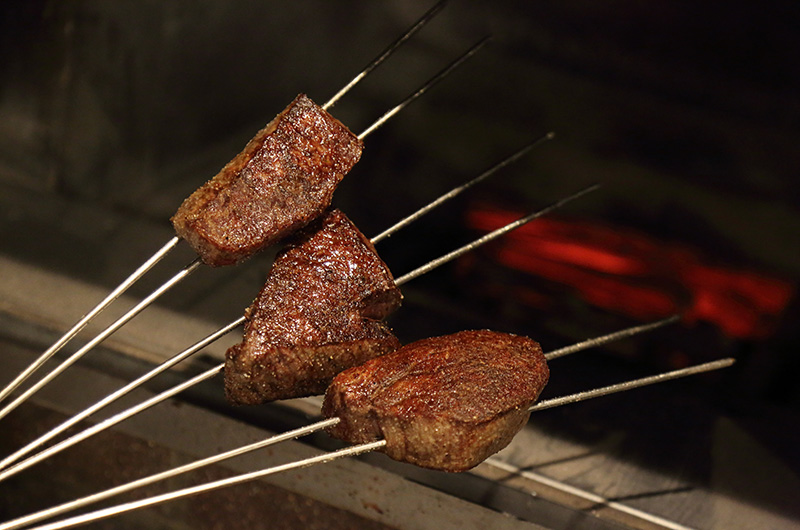 A kiln-grilled Wagyu steak house that uses white charcoal from Kishu